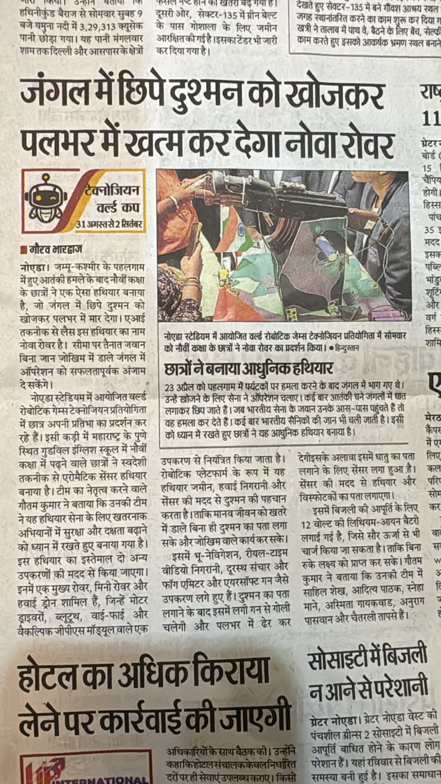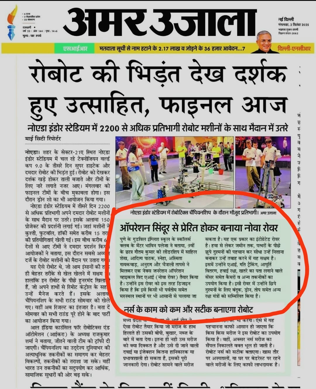 This video features the "Nova Rover," an innovative military defense project developed by school children (6th to 9th grade) in Pune, India. The project was inspired by the Chandrayaan mission and designed to reduce soldier casualties by using advanced technology for surveillance and combat.